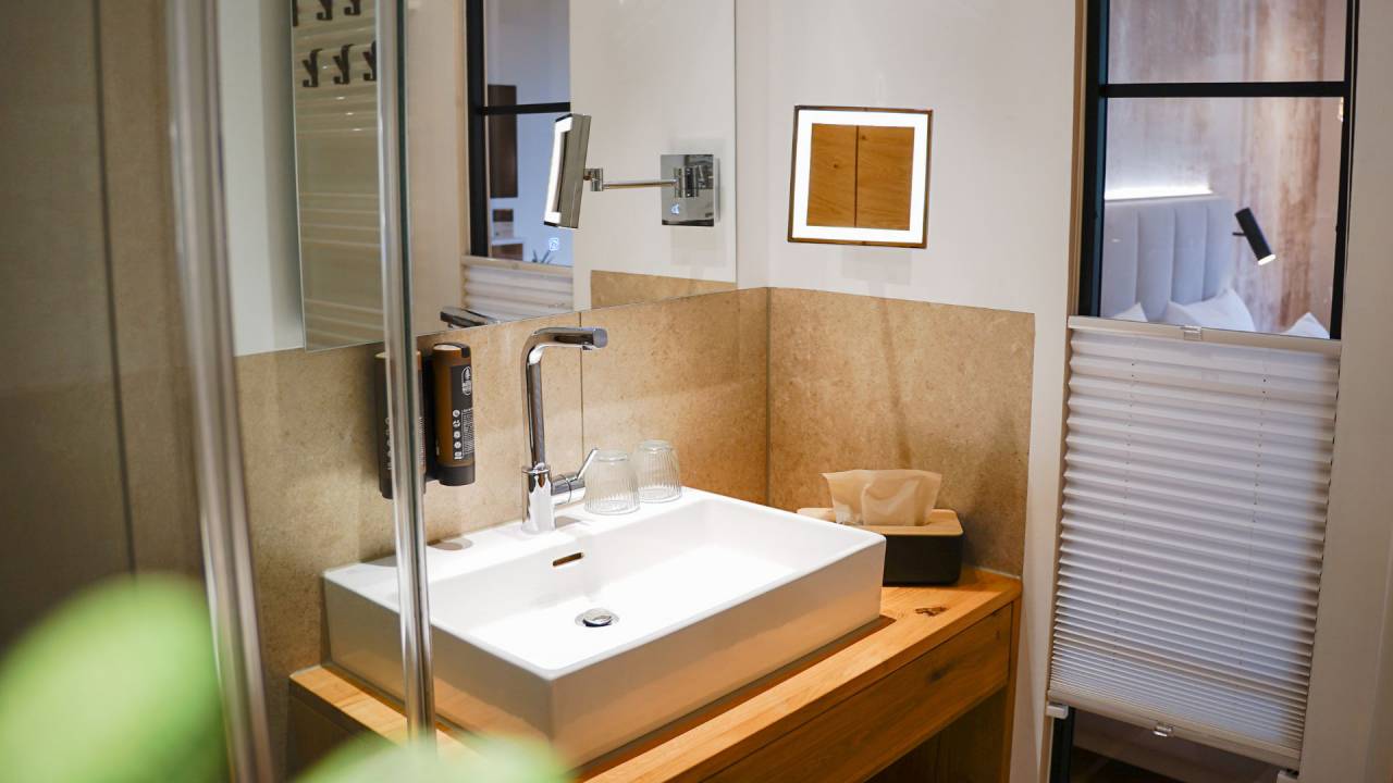 Unsere pur-Zimmer sind schlicht, funktional und gemütlich. Ideal für aktive Tage draußen in der Natur oder kurze Aufenthalte, bei denen das Wesentliche zählt: ein gutes Bett, ein sauberes Bad und ein Ort zum Runterkommen.