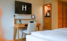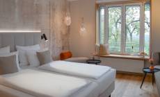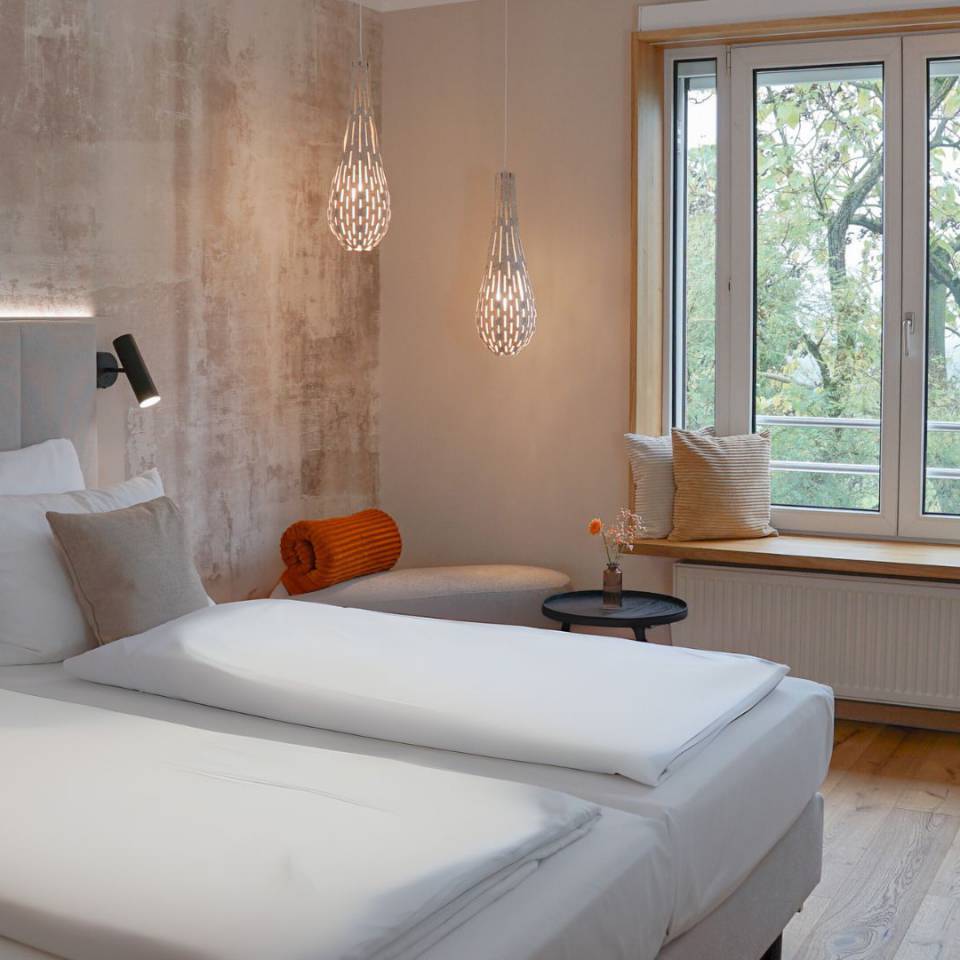 The natur.plus rooms combine modern design with natural materials and a cosy living feeling. The generous windows with integrated seating niche open up the view into the vineyards – almost reaching the bed.